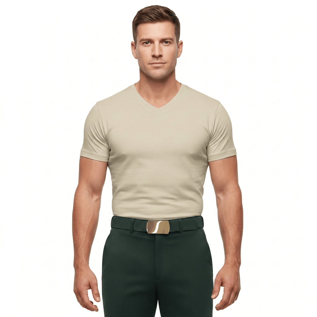 INFORMAÇÕES SOBRE O PRODUTOA Camiseta Bege Gola V é a peça ideal para uso por baixo da Camisa Bege de Manga Curta do Exército Brasileiro, garantindo conforto, discrição e apresentação alinhada ao padrão do uniforme. Desenvolvida para compor o conjunto do uniforme social, ela oferece caimento adequado sob a camisa, com gola em “V” que ajuda a manter o visual limpo e bem ajustado, sem marcar na região do pescoço. Indicada para quem busca uma camiseta bege do Exército Brasileiro para usar por baixo do uniforme, com toque macio e respirabilidade para o dia a dia em serviço, formaturas e atividades administrativas.
