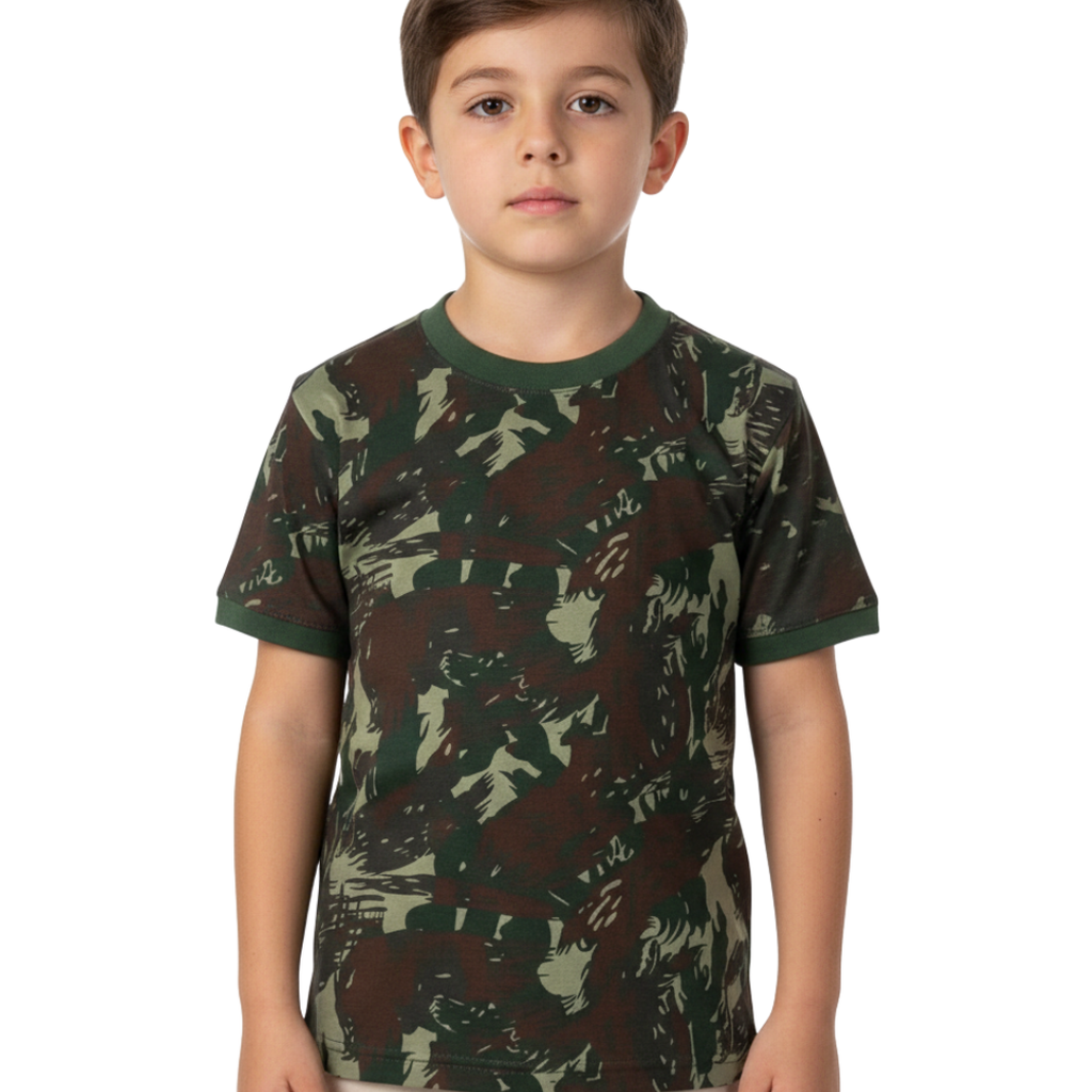 INFORMAÇÕES SOBRE O PRODUTOA Camiseta Camuflada Malwee Kids Infantil padrão Exército Brasileiro foi desenvolvida para pais que desejam vestir as crianças com estilo militar autêntico, sem abrir mão do conforto no dia a dia. Confeccionada em malha 100% algodão, essa camiseta infantil camuflada oferece toque macio, ótima respirabilidade e resistência ao uso constante, ideal para brincar, correr e se movimentar com liberdade. Com estampa camuflada inspirada no Exército Brasileiro e visual moderno, é perfeita para compor looks casuais, temáticos e passeios ao ar livre, sendo uma excelente opção para filhos de militares, fãs de temas táticos e crianças que gostam de roupas cheias de personalidade.