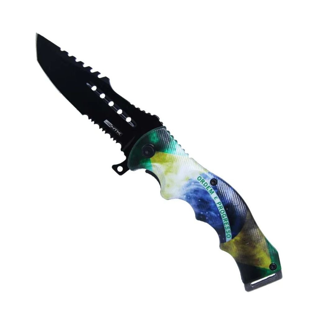 INFORMAÇÕES SOBRE O PRODUTO O Canivete Patriota NTK (Nautika) é um modelo tático inspirado na bandeira do Brasil, ideal para quem busca um canivete compacto, resistente e com visual temático patriota para aventuras, uso diário e situações de emergência. Com lâmina em aço inoxidável e cabo em polímero, ele combina durabilidade e leveza, garantindo manuseio confortável em diferentes tipos de pegada. Seu acabamento exclusivo foi pensado para os amantes de cutelaria que desejam um produto de alta qualidade, com estética marcante e funcionalidade real em ambientes outdoor, pesca, esportes radicais, resgate e atividades táticas.