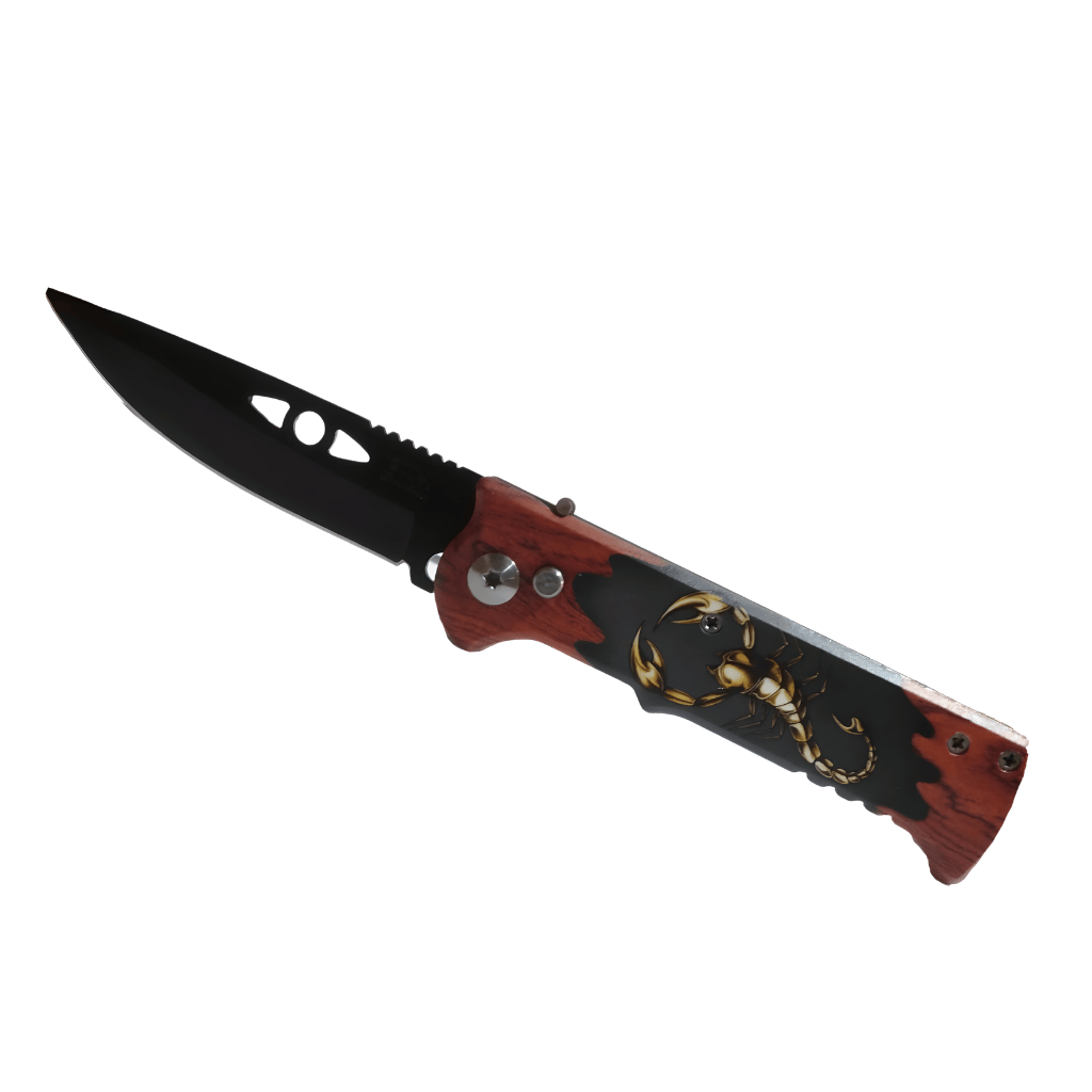 DESIGN EXCLUSIVO COM CLIP ESCORPIÃO O destaque deste canivete tático é o clip dourado com tema escorpião, que além de agregar estilo, ajuda no transporte seguro no bolso, na mochila ou no cinto. É um canivete prático para quem busca um EDC com personalidade, ideal para manter sempre à mão em viagens, trilhas e rotinas de trabalho. O cabo em madeira proporciona boa empunhadura, enquanto o formato dobrável facilita o armazenamento, tornando-o uma opção versátil para compor um kit de sobrevivência e um kit outdoor. • Clip dourado em formato de escorpião, com visual marcante • Cabo em madeira para pegada confortável e estilo clássico • Canivete dobrável prático para EDC e atividades outdoor • Ideal para camping, trilhas, pesca e uso diário • Excelente opção para presente e coleção