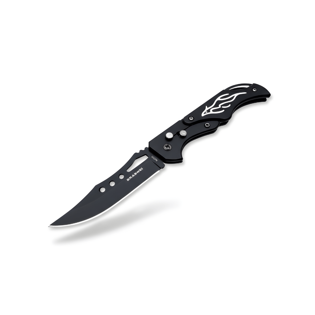 PRATICIDADE, ESTILO E FUNCIONALIDADE Com mecanismo automático, o canivete BW7019 oferece abertura rápida e segura, ideal para situações que exigem agilidade. A lâmina preta em aço inox proporciona boa resistência e eficiência em cortes leves e médios, garantindo longa vida útil. Seu design detalhado e moderno torna o manuseio confortável, enquanto o tamanho aproximado de 21 cm e o peso de apenas 100 g asseguram uso prático e discreto, sem comprometer o desempenho.