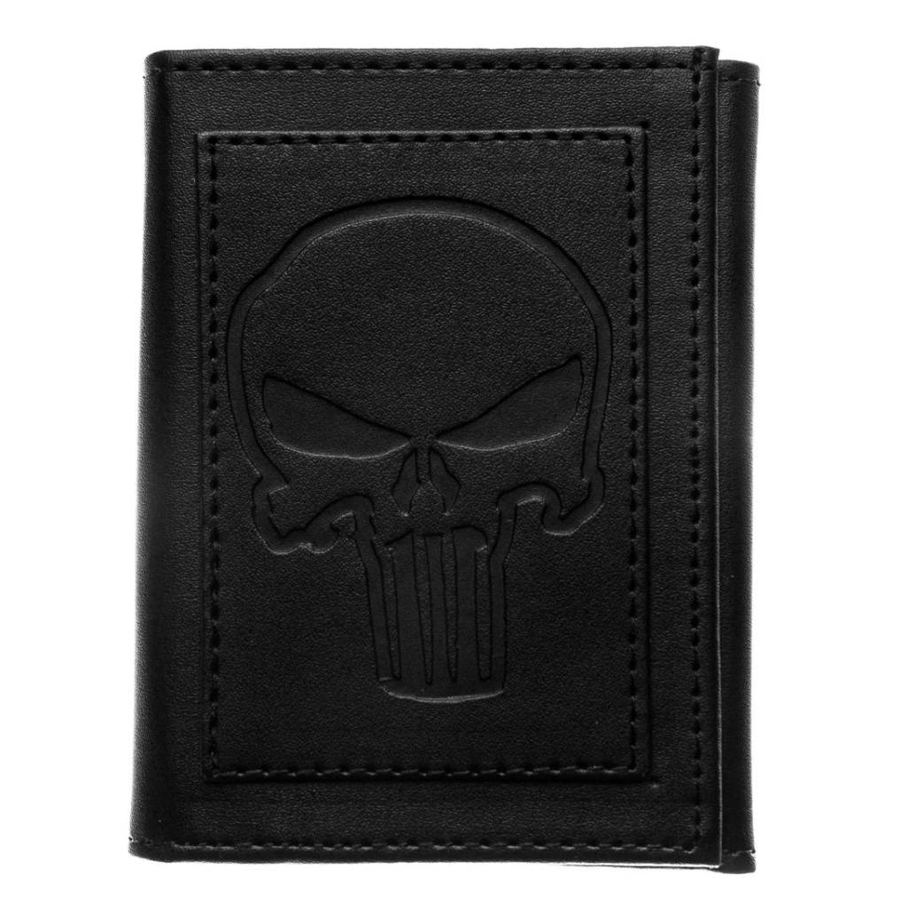 INFORMAÇÕES TÉCNICAS Produto: Carteira Sintética Estampa: Justiceiro (impresso) Material: Sintético de ótima qualidade Compartimentos internos: porta-moedas, porta-documentos e porta-cartões Tamanho: Único Observações: fotos ilustrativas; medidas aproximadas.