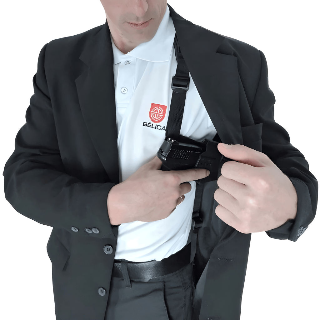 INFORMAÇÕES SOBRE O PRODUTOO Coldre Axilar Bélica foi desenvolvido para oferecer máxima segurança, conforto e versatilidade ao portar sua arma curta em operações táticas, atividades profissionais ou uso diário velado. Produzido com materiais de alta resistência, como Cordura 500 impermeável, polímero de engenharia e forração interna 3D respirável, o conjunto proporciona excelente durabilidade, distribuição equilibrada do peso e ajuste preciso ao corpo. O sistema axilar permite porte discreto, seguro e silencioso, enquanto os passadores, fitas e reforços estruturais garantem estabilidade durante movimentos rápidos. Acompanha coldre com trava, porta-carregador duplo e suspensório totalmente regulável, permitindo personalização completa conforme o biotipo e a necessidade operacional do usuário.