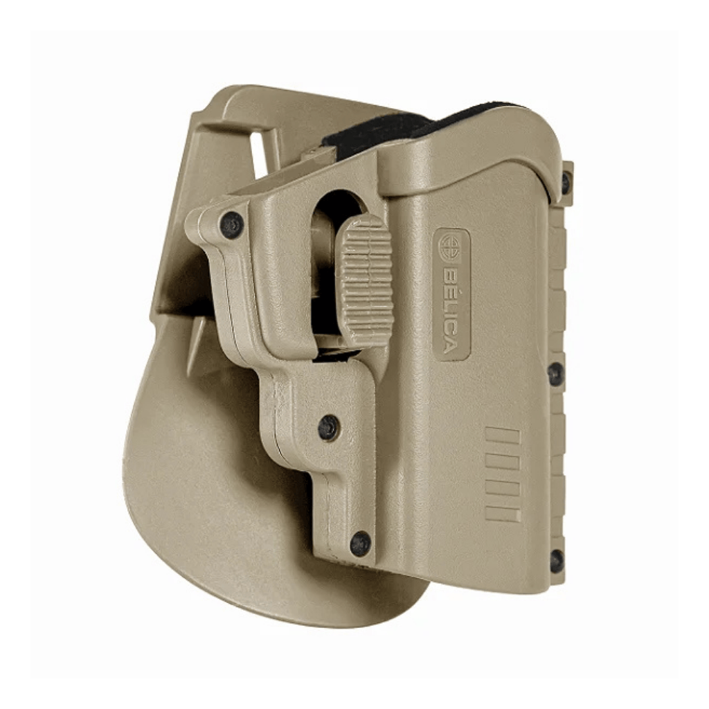 CARACTERÍSTICAS E DIFERENCIAISO Coldre Eagle conta com retenção nível I e trava de retenção ativa com saque rápido, oferecendo segurança contra retirada indevida por terceiros e maior agilidade na empunhadura. Sua catraca rotativa possibilita a regulagem de ângulo, permitindo ajuste personalizado conforme a necessidade operacional e também a fixação em outras plataformas compatíveis da linha Bélica. O Paddle é fabricado em polímero resistente, com plataforma ergonômica e confortável, passador compatível com cintos de até 55 mm e sistema de rotação que melhora o manuseio do equipamento. O conjunto acompanha chave para ajuste, facilitando regulagens conforme preferência do usuário.