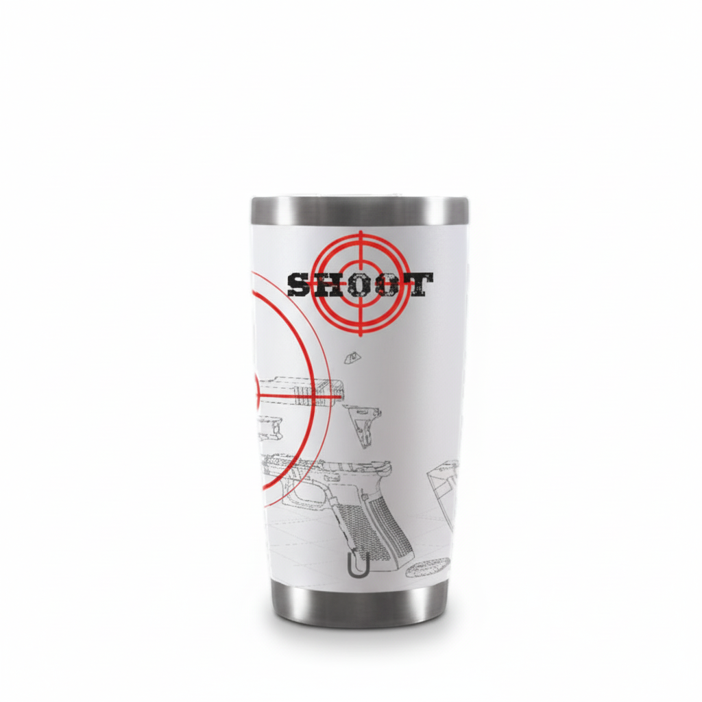 Copo Sleeck 473 ml Glock Desmontada com Mira – Branco (Glück). O parceiro ideal para rotina, trabalho e lazer: em aço inox 304 com parede dupla e isolamento a vácuo, mantém a sua bebida na temperatura por mais tempo, sem suor externo. Design suave da linha Sleek (Glück), robusto e prático para o dia a dia.