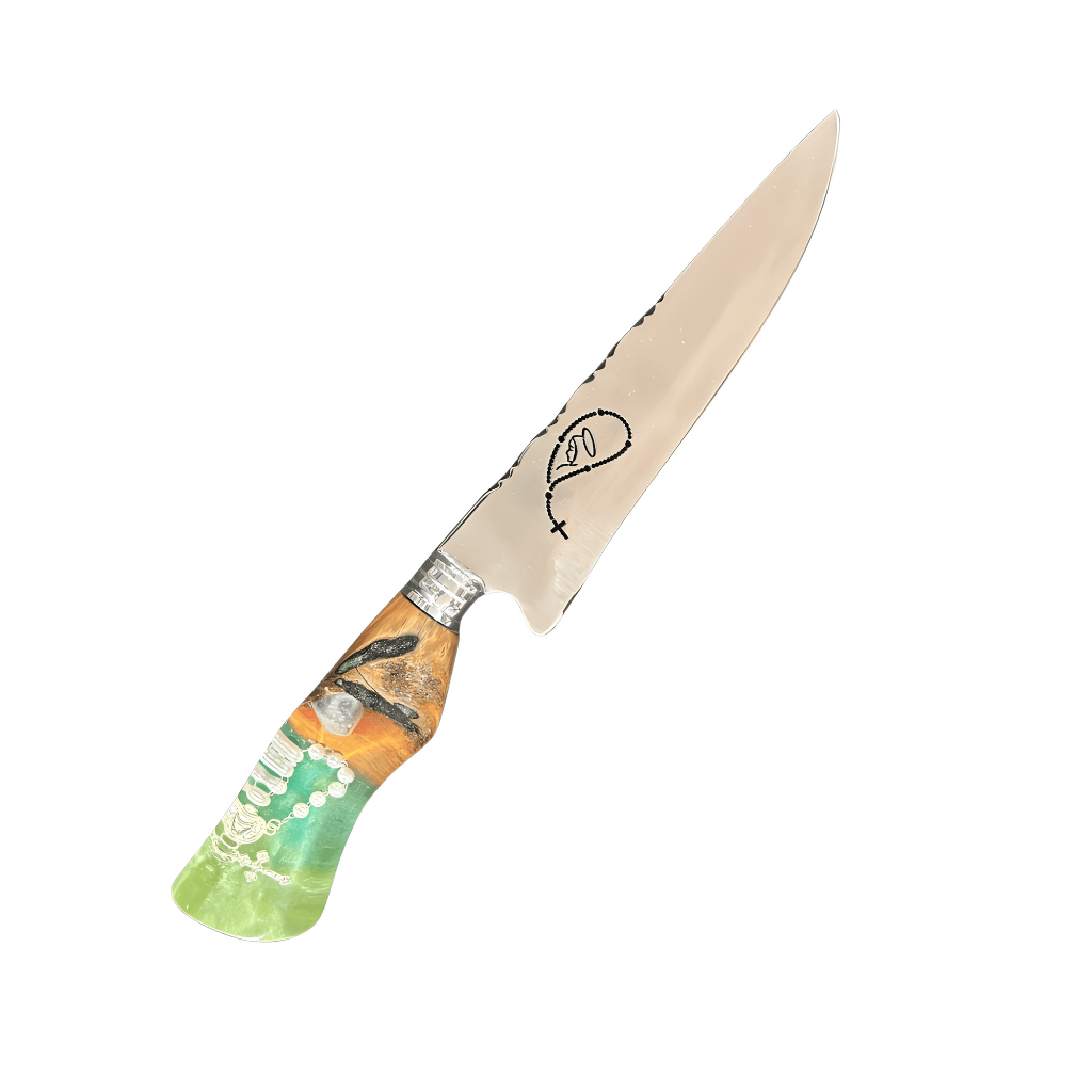 INFORMAÇÕES TÉCNICASProduto: Faca Artesanal Terço Cabo Híbrido (Murrah)Produção: artesanalComprimento do cabo: 11 cmComprimento da lâmina: 20 cmComprimento total aproximado: 31 cmObservações: fotos ilustrativas; medidas aproximadas.