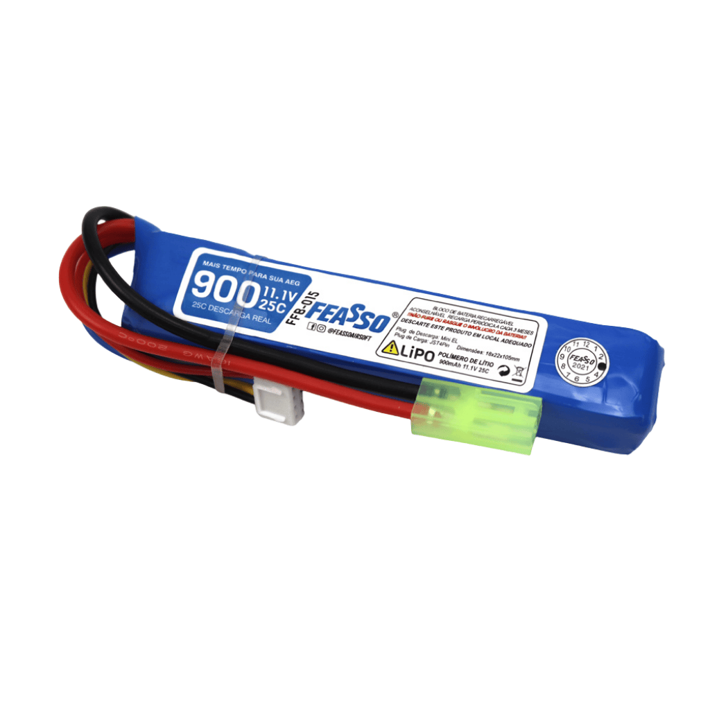 INFORMAÇÕES SOBRE O PRODUTO A Bateria LiPO FFB-015 25C – 11.1V – 900mAh da Feasso é uma opção desenvolvida especialmente para AEGs com upgrade, oferecendo potência superior, resposta rápida e maior estabilidade energética. Criada para jogadores que buscam desempenho elevado no Airsoft, ela passa por rigorosos testes de qualidade, garantindo descarga confiável, durabilidade prolongada e maior segurança durante o uso. Projetada com tecnologia avançada de polímero de lítio, entrega excelente performance mesmo em jogos prolongados e situações de alta demanda.