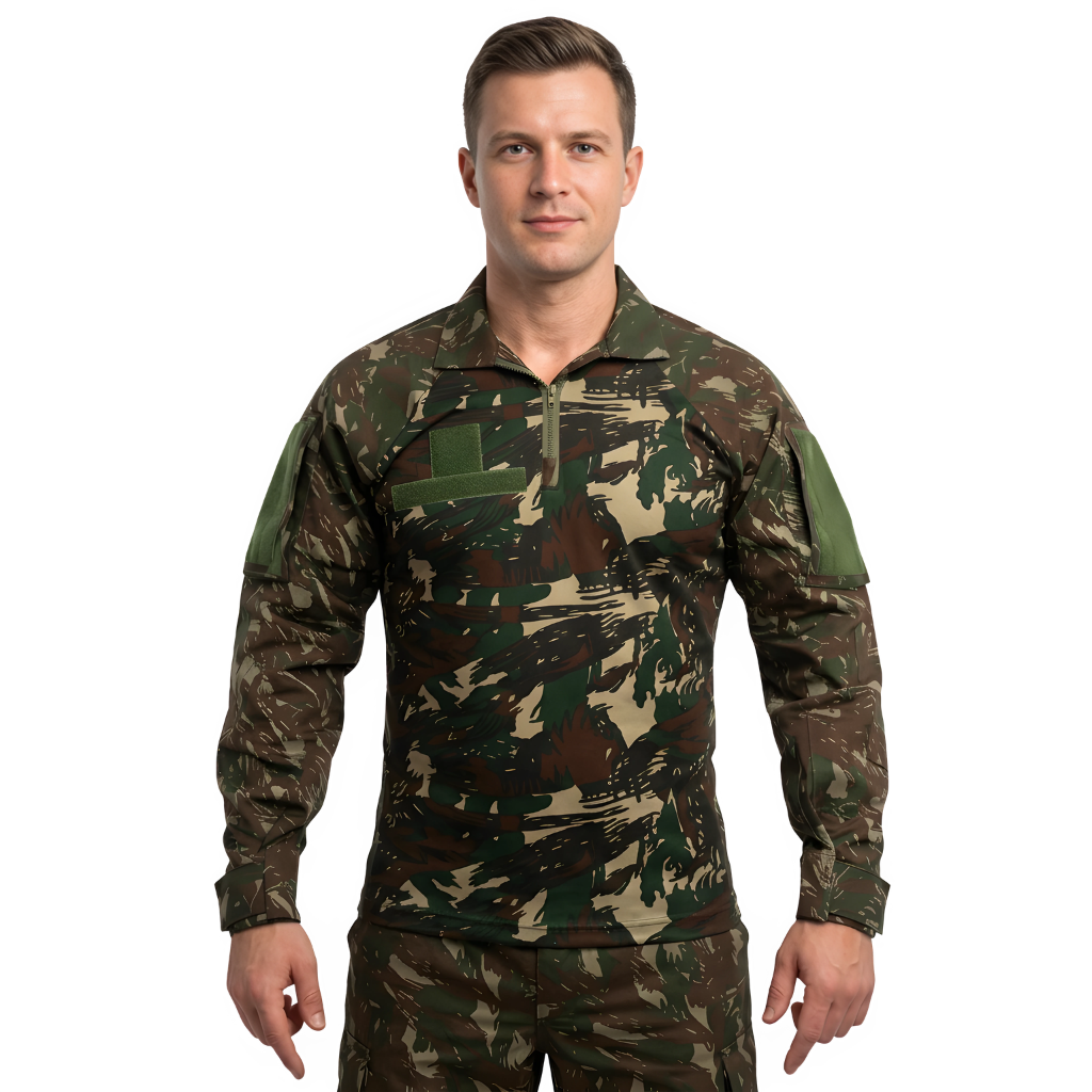INFORMAÇÕES SOBRE O PRODUTOA Gandoleta Camisa de Combate – Novo Modelo Padrão EB foi desenvolvida especialmente para atender às normas técnicas do Regulamento de Uniformes do Exército Brasileiro, garantindo padronização, desempenho e apresentação profissional. Confeccionada com mangas em tecido de Alta Solidez e corpo em Dry Fit altamente respirável, oferece conforto térmico, secagem rápida e mobilidade superior, atributos essenciais para o militar em instrução, operações de campo e atividades prolongadas ao ar livre. Sua camuflagem regulamentar proporciona discrição em ambientes de mata, vegetação densa e treinamentos táticos, mantendo a integridade visual e funcional do uniforme em diferentes cenários operacionais.