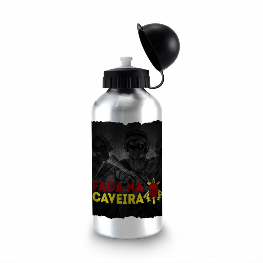 INFORMAÇÕES TÉCNICAS Material: Alumínio Formato: Cilíndrico Capacidade: 500ml Tipo: Garrafa Squeeze / Squeeze esportivo Estilo: Militar BOPE “Faca na Caveira” Cuidados: não levar ao congelador Observações: fotos ilustrativas; medidas aproximadas.