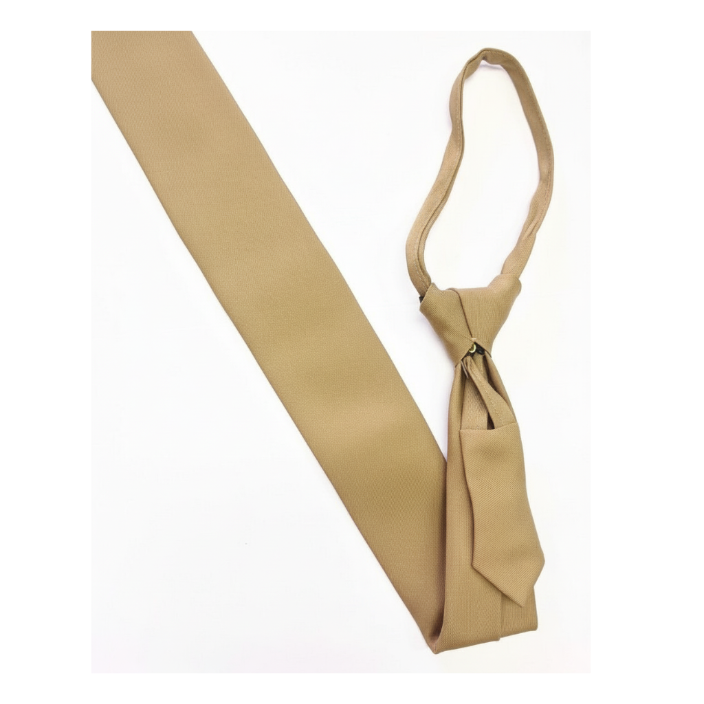 Ideal para oficiais, sargentos, cabos e soldados, a gravata bege é um acessório indispensável para completar o Uniforme 5º A e outras composições regulamentares do fardamento militar.