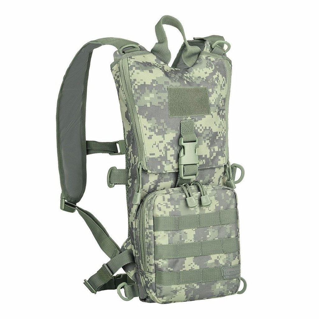 A mochila Hydro possui a função de transporte de refil de hidratação em ações de combate tático, esporte ou aventura. Tem bolso frontal e conta com sistema MOLLE que possibilita o usuário personalizar o uso e acomodar equipamentos.