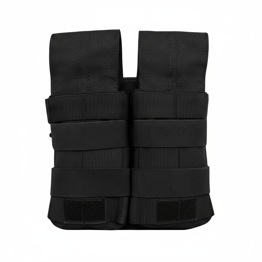 RESISTÊNCIA, FUNCIONALIDADE E SISTEMA MODULAR Desenvolvido para alto desempenho, o porta carregador conta com fitas modulares horizontais e verticais compatíveis com sistemas de fixação MOLLE, garantindo encaixe firme em cintos, coletes e plataformas táticas. A estrutura interna e externa foi pensada para suportar uso contínuo, impactos e abrasão, enquanto os elásticos frontais auxiliam na retenção adicional. A aba com puxador em fita de poliamida facilita a abertura, mesmo com luvas, e o sistema Slide and Lock nas fitas traseiras dispensa botões, oferecendo travamento seguro e silencioso. A saída inferior com travete circular permite drenagem e expulsão de resíduos, aumentando ainda mais a durabilidade do equipamento.