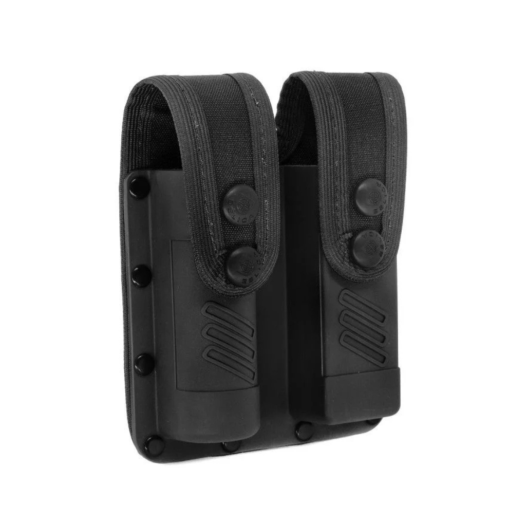 Informações sobre o produtoO Porta Carregador Multiuso Bélica (Duplo) foi projetado para versatilidade, retenção segura e saque rápido em serviço, treino e operações táticas. Compatível com diversos carregadores e equipamentos essenciais — como lanterna tática e spray —, combina polímero de alta resistência com cordura 500 resinada para máxima durabilidade e resistência à abrasão. A lingueta de proteção em cordura, aliada aos botões de pressão em latão com capa de silicone (duas regulagens), mantém o conteúdo estável ao correr, pular ou rastejar, enquanto o acabamento interno reduz o atrito e facilita o manuseio. Indicado para uso policial, militar, segurança privada, airsoft e tiro esportivo, com encaixe em cintos táticos de até 55 mm.