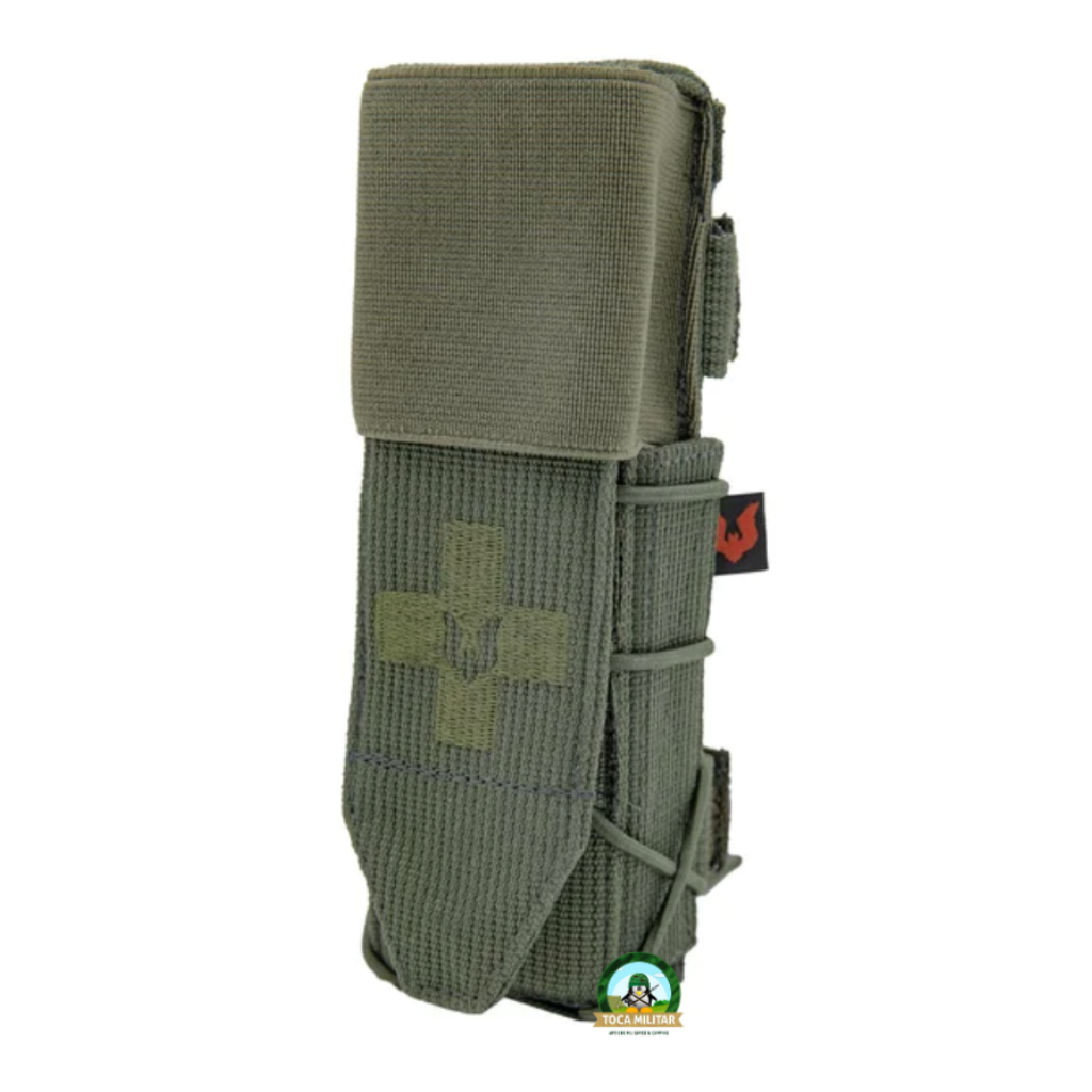 Benefícios e usoO Porta Torniquete Desmodus Verde garante máxima proteção e praticidade no porte do seu torniquete, mantendo-o sempre acessível e seguro. Seu sistema de saque rápido permite acionamento imediato, mesmo com uma das mãos, e o mecanismo elástico de compressão interna mantém o equipamento firme sem dificultar o manuseio. A abertura total e flexível evita engates durante a retirada, tornando o processo fluido e confiável. Compatível com fixação M.O.L.L.E. e com sistema adicional para cinto removível, adapta-se facilmente a coletes, mochilas e cinturões táticos. Fabricado com materiais de alta tenacidade, é ideal para forças de segurança, socorristas, militares e praticantes de airsoft que buscam eficiência em situações críticas.