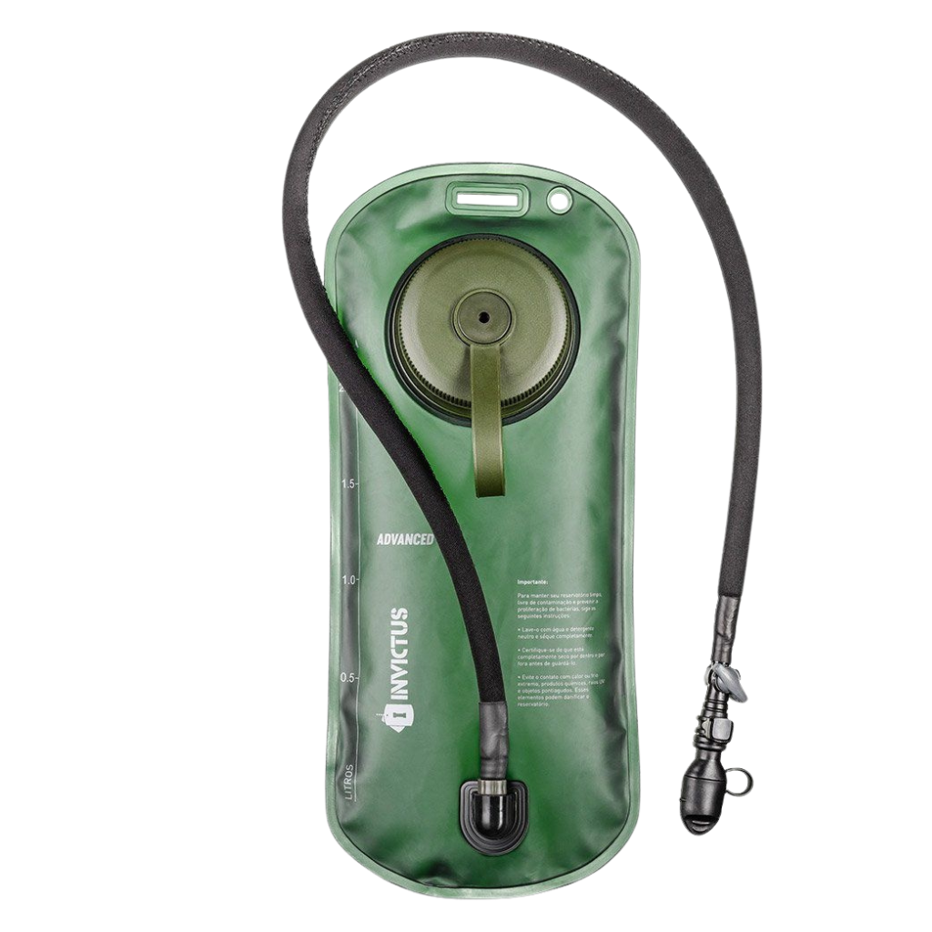 INFORMAÇÕES SOBRE O PRODUTO O Refil de Hidratação Advanced da INVICTUS é o reservatório ideal para quem busca eficiência e resistência em atividades táticas, esportivas e outdoor. Com capacidade para 2 litros, é produzido em plástico PEVA termo selado, livre de substâncias tóxicas e voláteis, garantindo segurança e qualidade na ingestão de água potável. Possui sistema de engate rápido da mangueira, válvula de sucção com tampa anti poeira e abertura ampla de 85 mm, facilitando o abastecimento e a higienização.